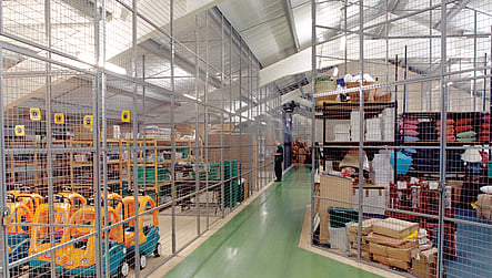 Our mesh partitioning system is modular and fully adjustable on site so will therefore cater for almost any requirement. Available heights are 2,200mm, 3,000mm then any multiple of 800mm or 2,200mm. Or our fully bespoke system to suit your exact specification. We offer multiple mesh partitioning panel and door options which will suit all warehouse partitioning, basement/garage storage or server room requirements.